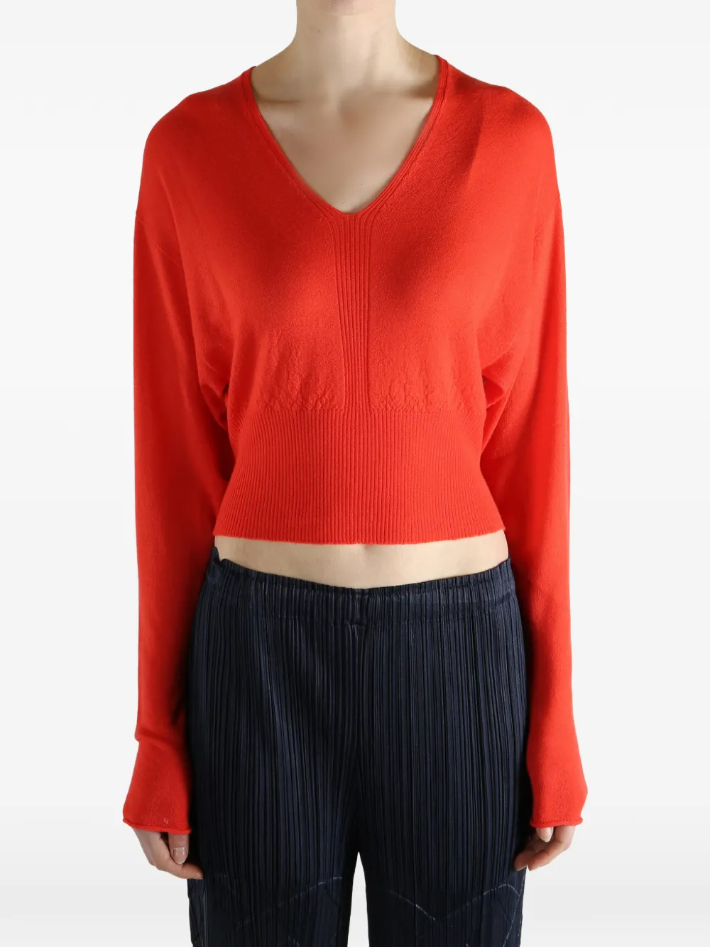 suéter de canalé con cuello en V