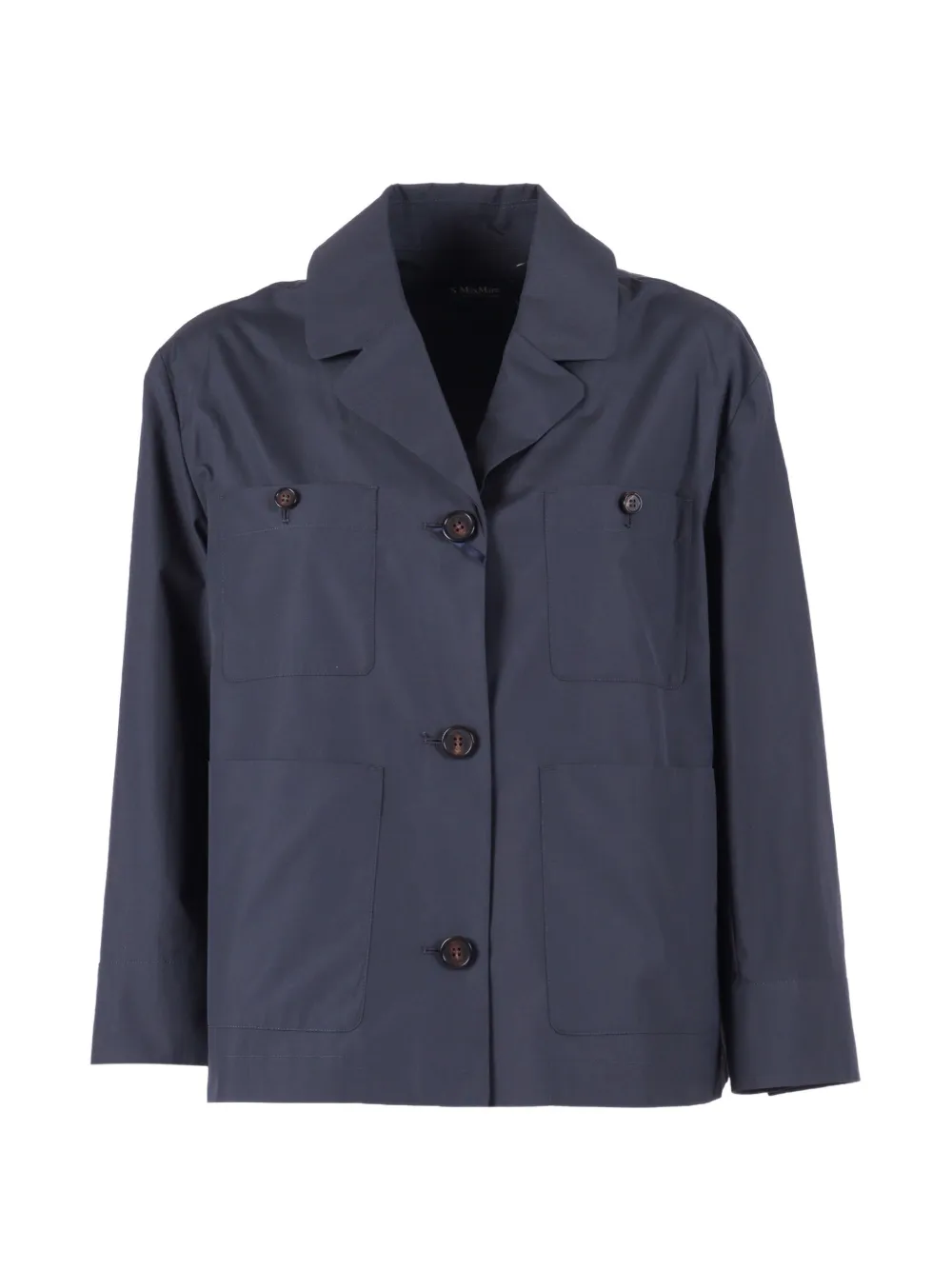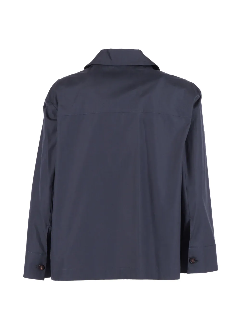 navy blue patch pockets button fastening long sleeves collar cotton