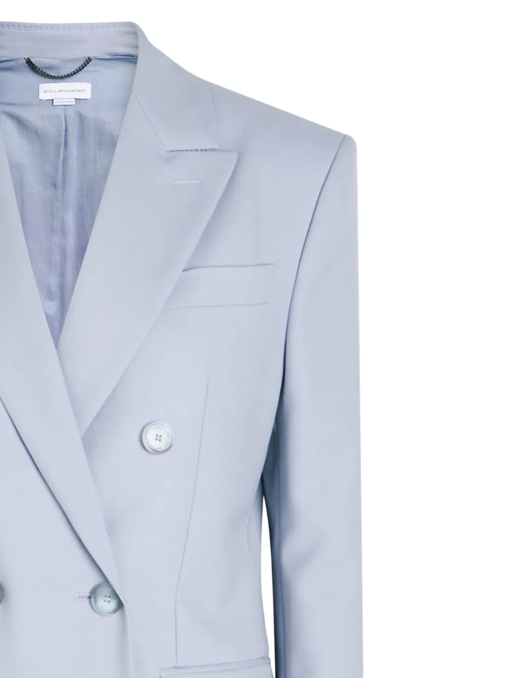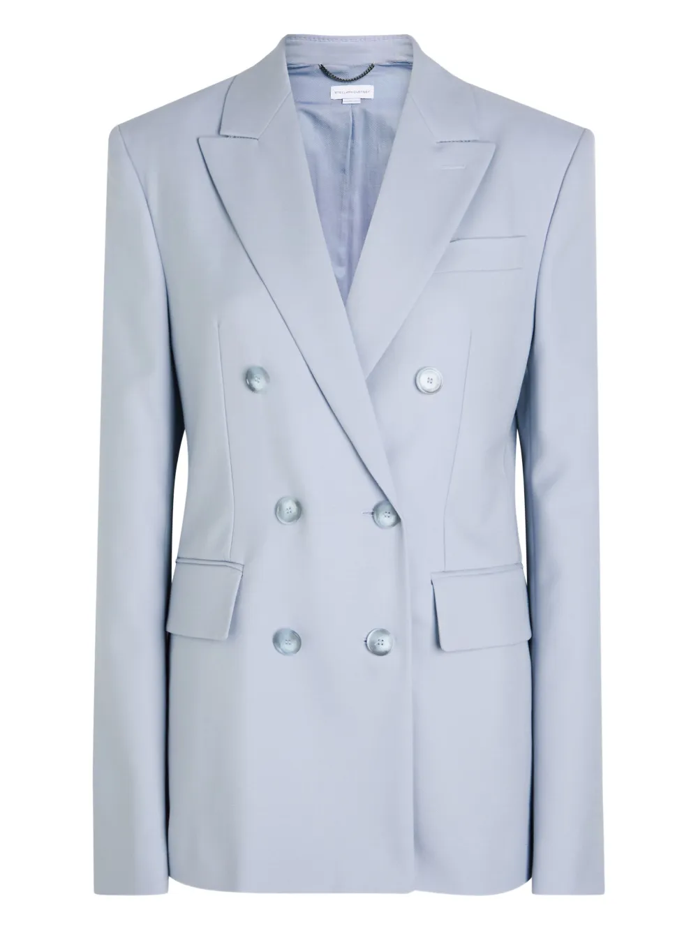 cloudy blue double-breasted button fastening peaked lapels flap pockets tailored construction