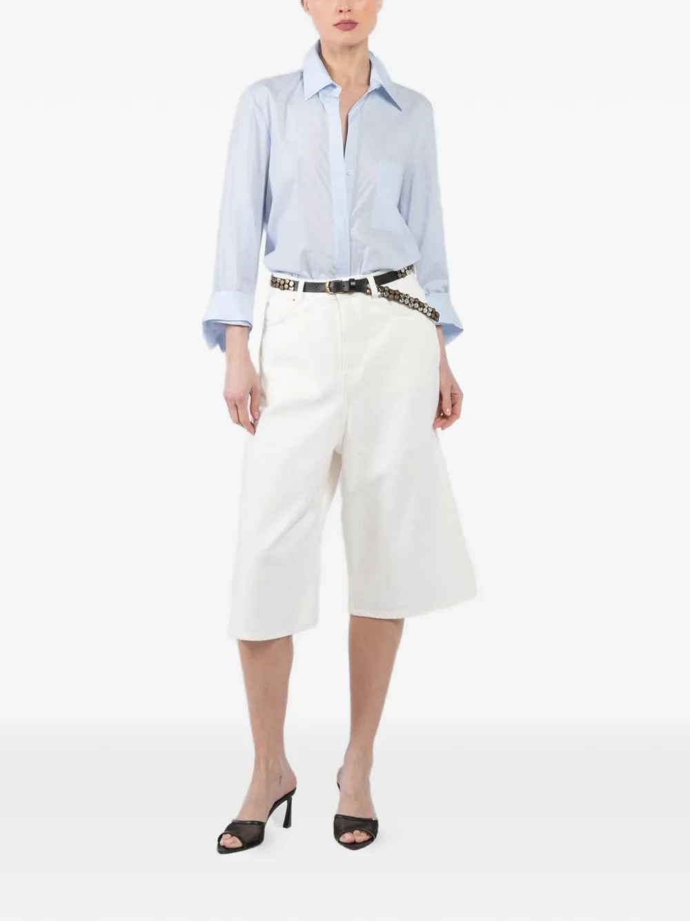 white wide leg front pockets back pockets belt loops