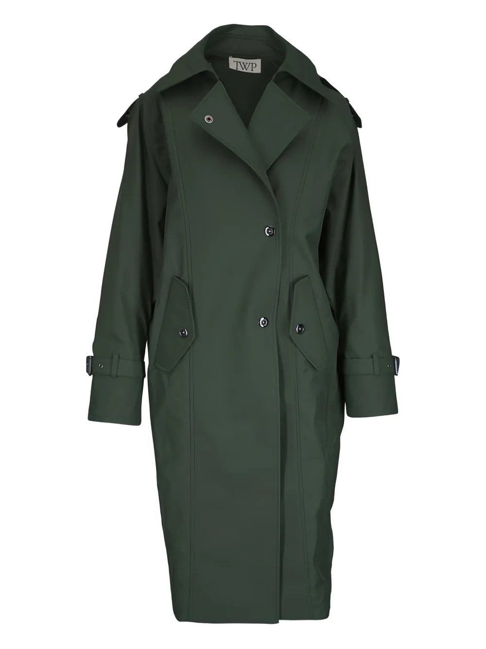 green button fastening epaulettes belt loops flap pockets adjustable cuffs