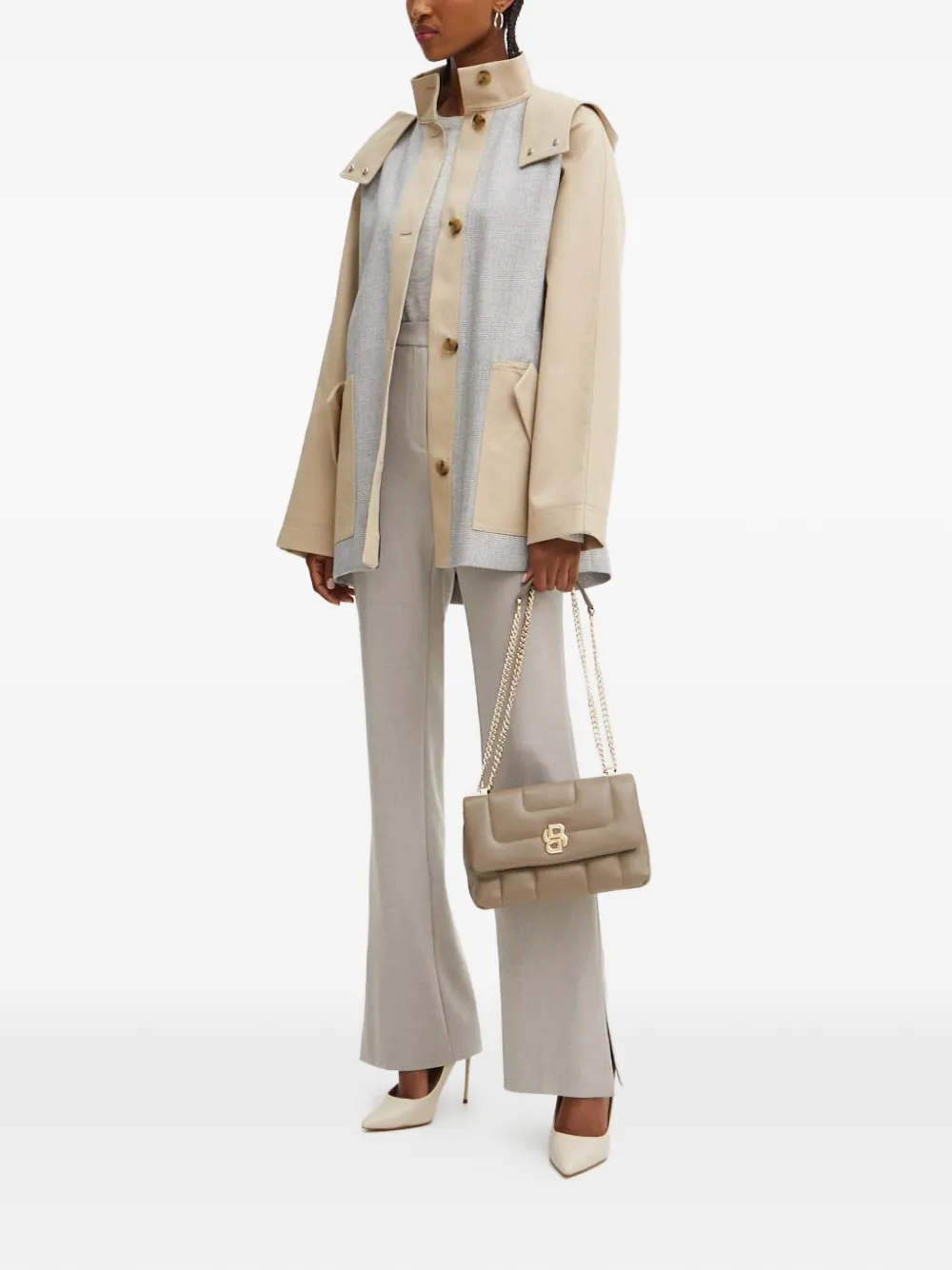 hooded checked coat