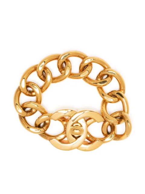 سوار سلسلة مطلي بالذهب بقفل باللف وبشعار CC 1995