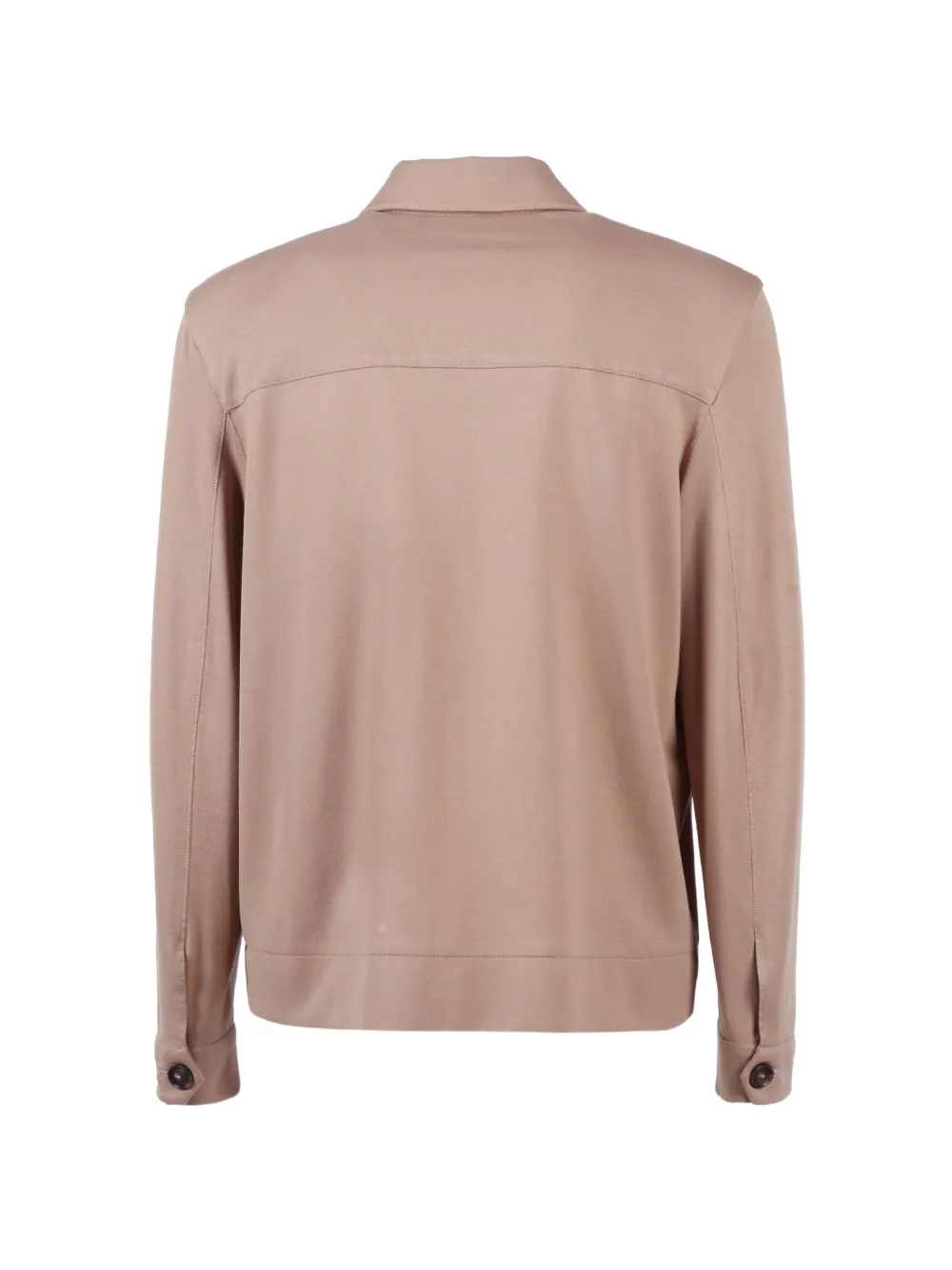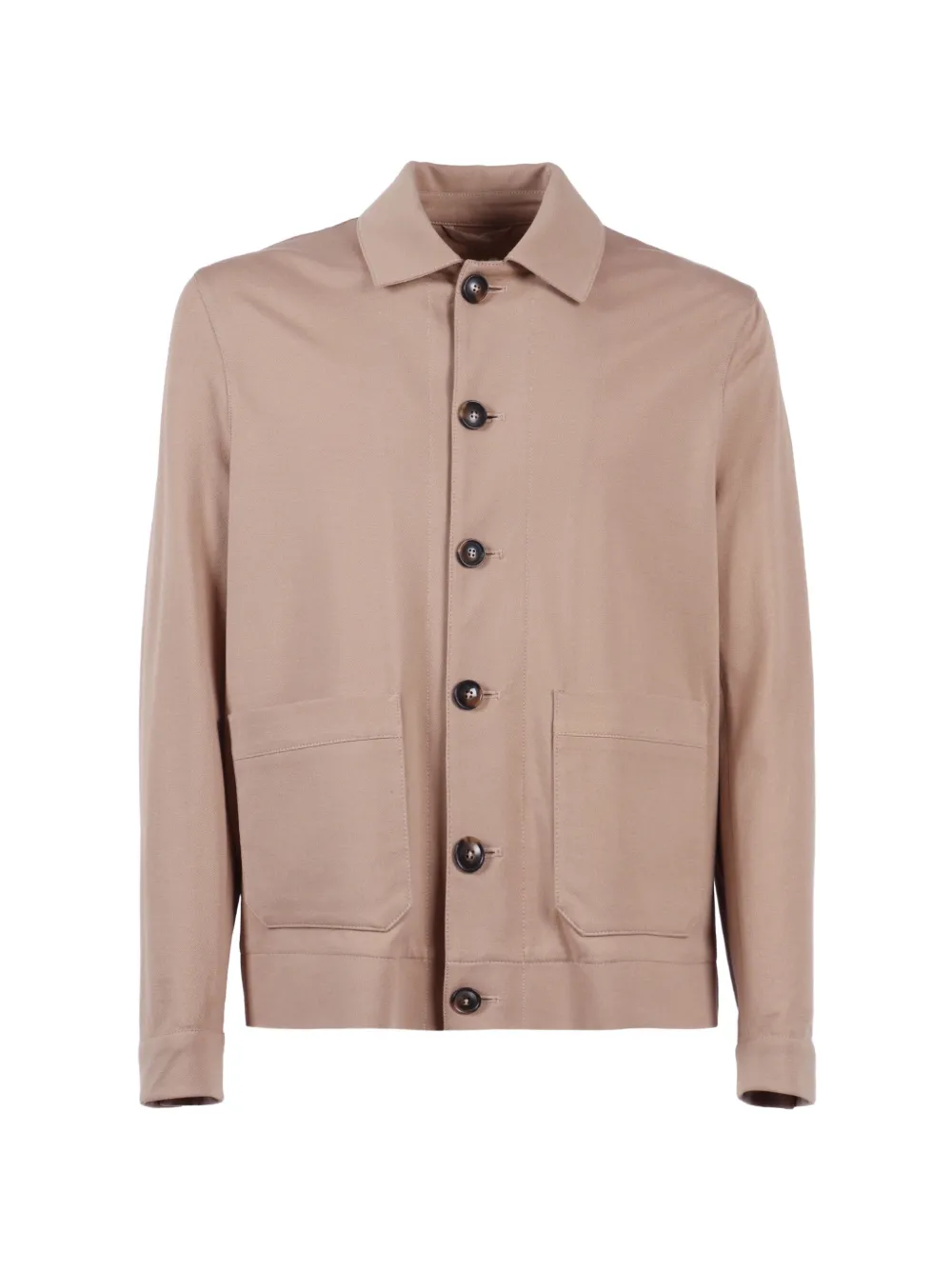 light brown button fastening front pockets long sleeves buttoned cuffs spread collar