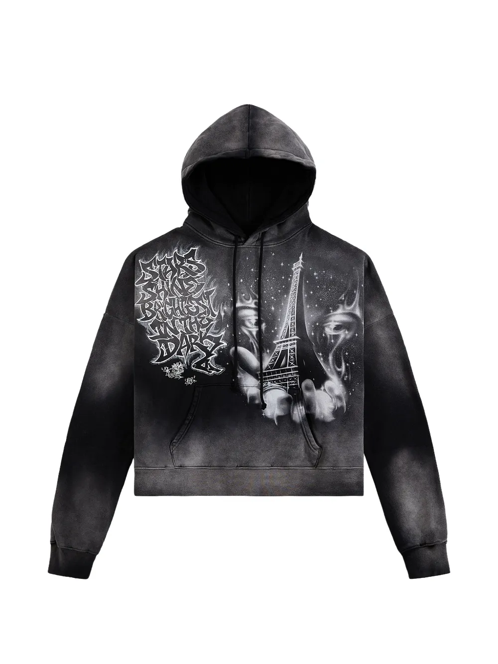 black cotton graphic print hooded ribbed hem ribbed cuffs kangaroo pocket