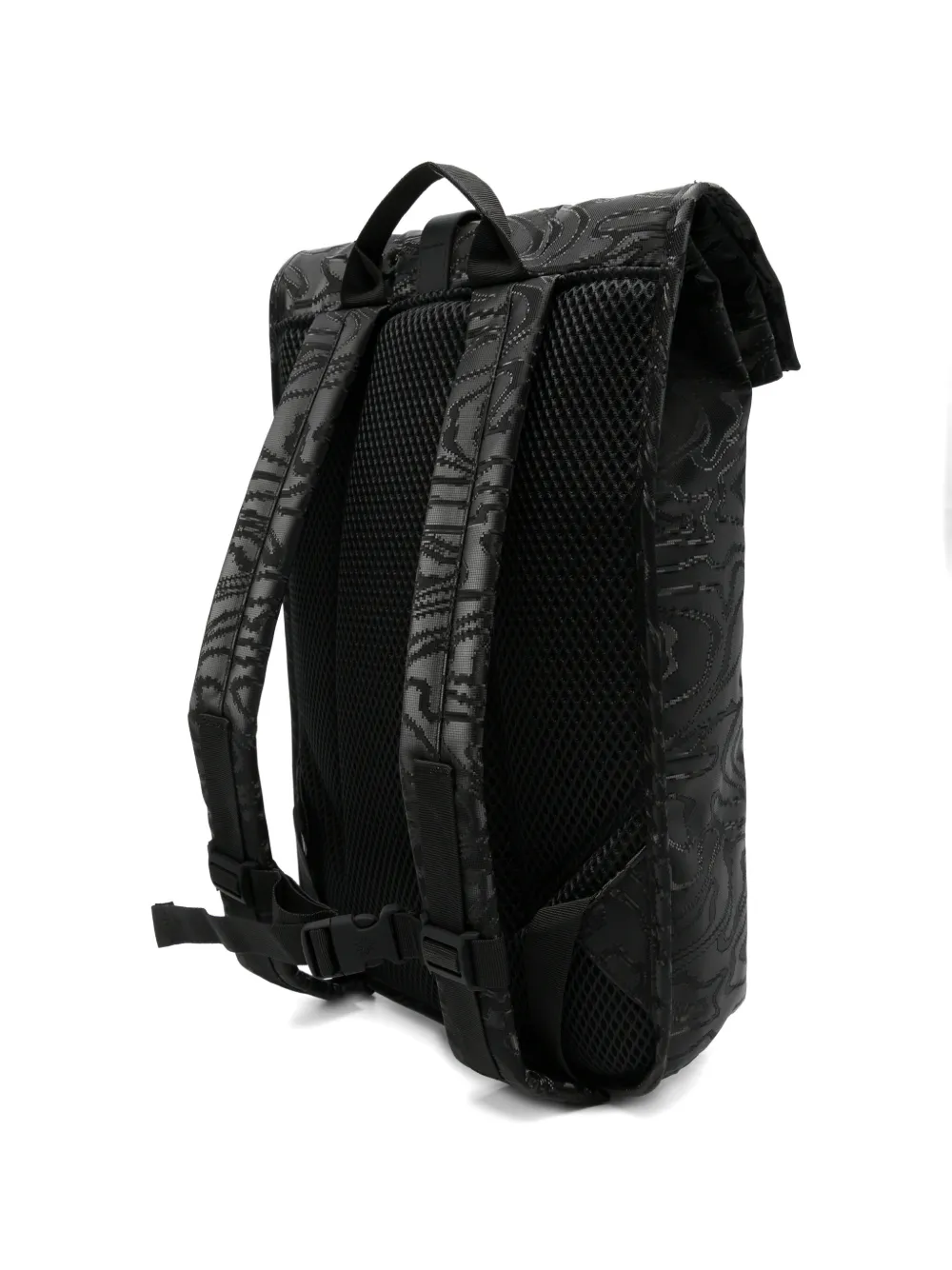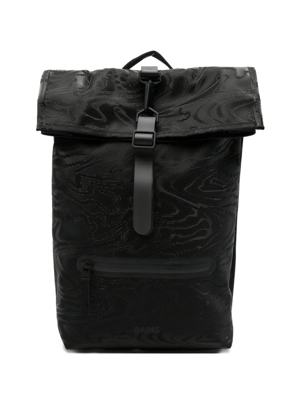 black patterned adjustable shoulder straps top handle buckle fastening