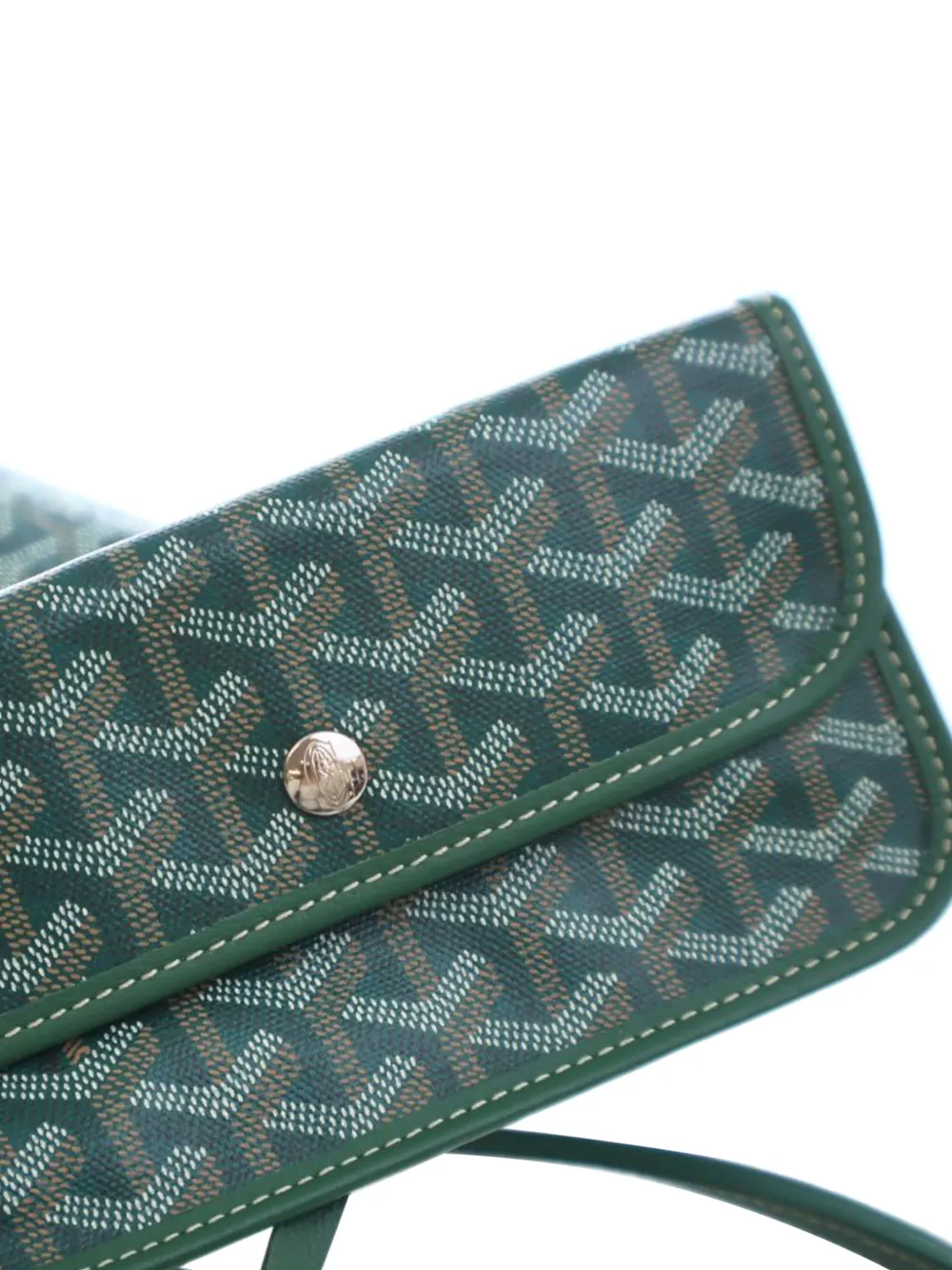 - coated canvas body with leather trim