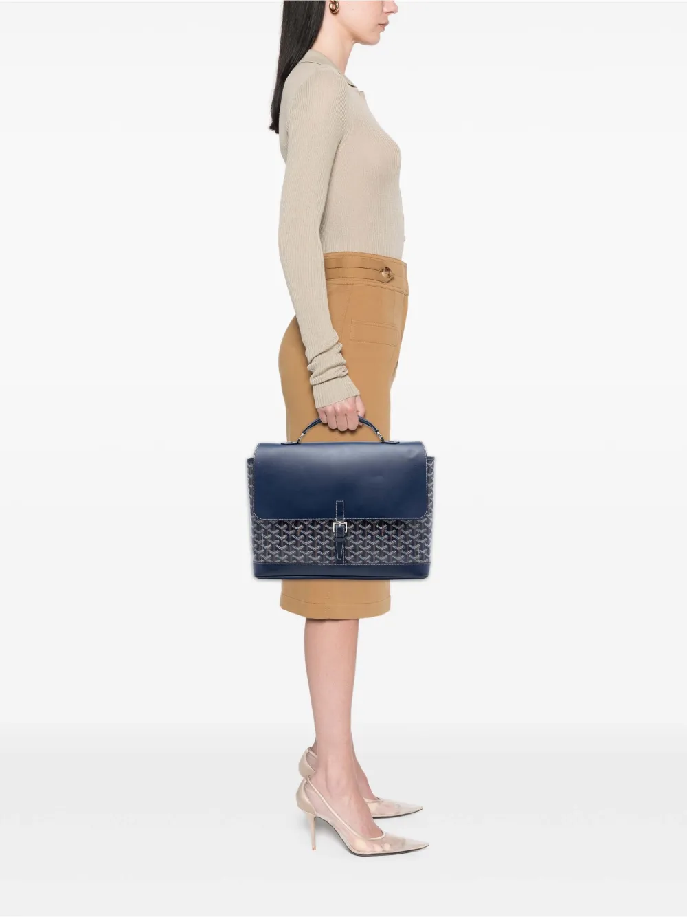 - flat leather top handle