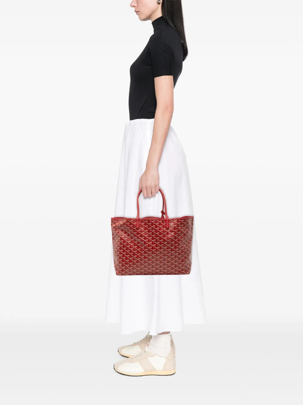 - coated canvas body with leather trim
