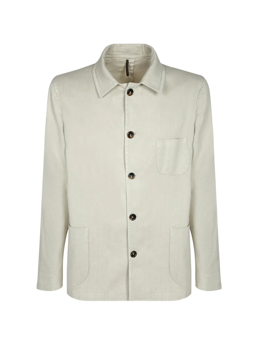 white spread collar front button-fastening chest patch-pocket two side patch-pockets long sleeves buttoned cuffs central rear-vent