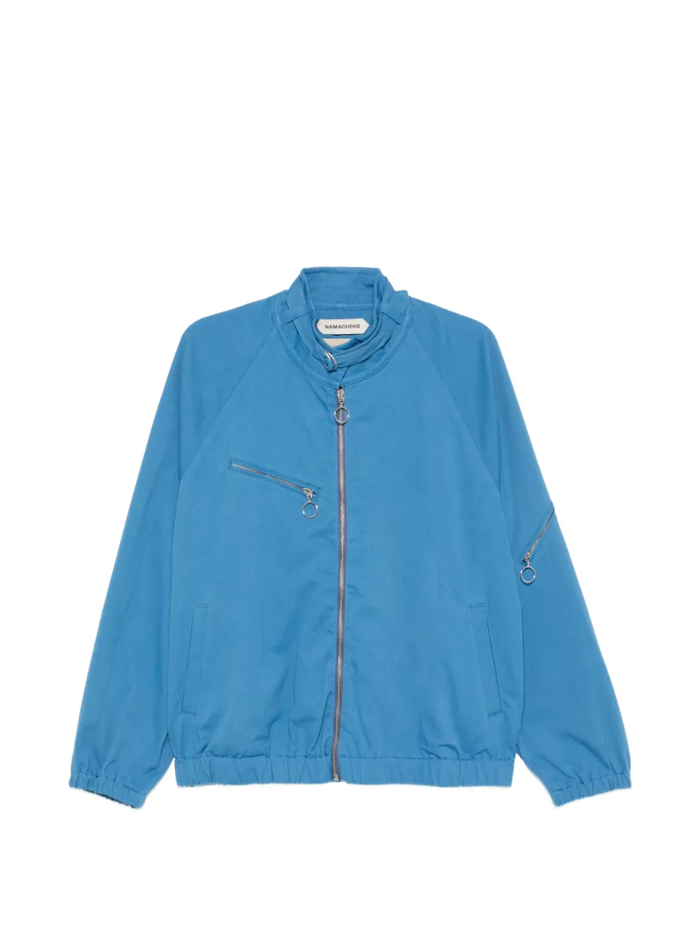 blue front zip fastening high neck with ring-pull detail raglan sleeves zip-fastening chest pocket two side welt pockets zip-fastening sleeve pocket elasticated hem elasticated cuffs silver-tone hardware