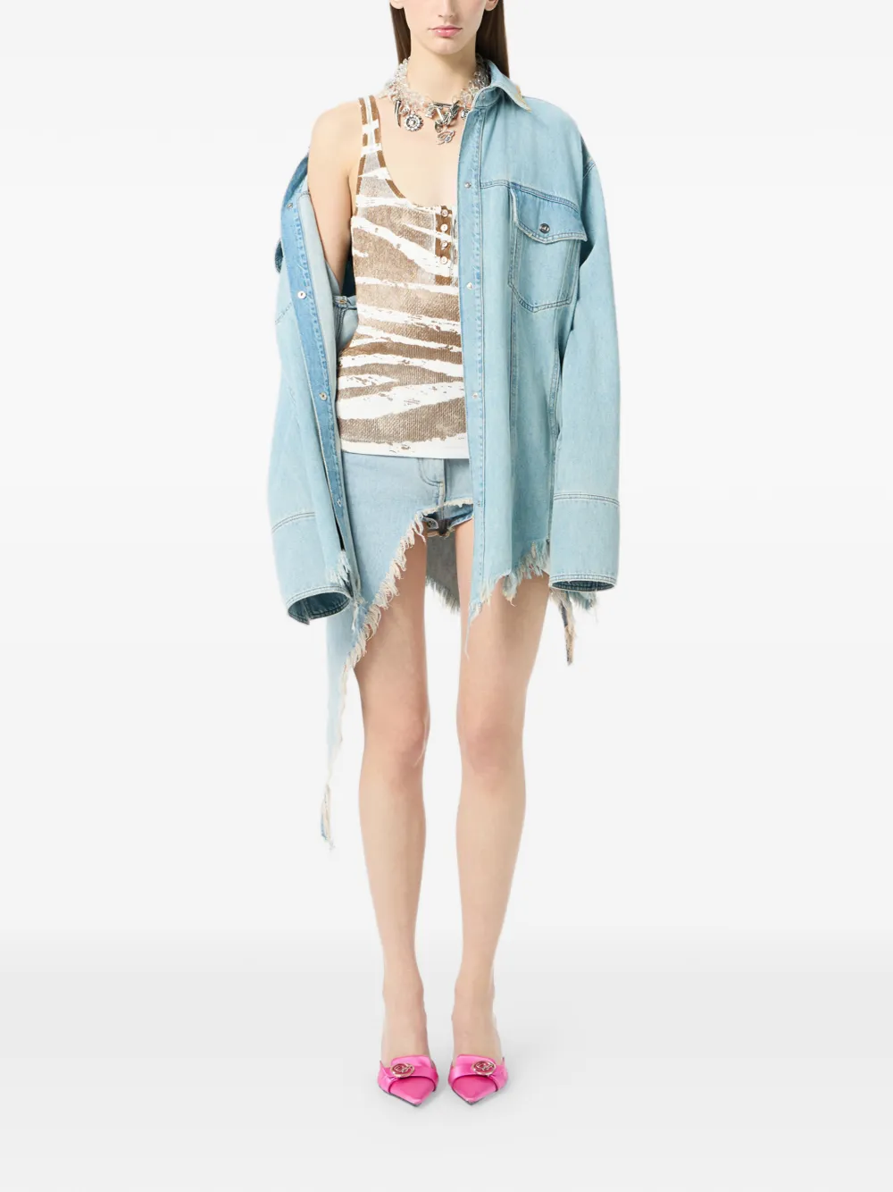 white and brown zebra print button fastening sleeveless