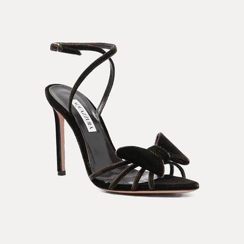 Simple yet effective, these Aquazzura heels are an instant classic. From their rich velvet finish to the bow detail and delicate straps, this pair of heeled sandals has entered the room before you’ve even walked through the door. An open toe gives some airtime to a fresh pedicure, but these would also pair well with a sleek pair of tights, either polka-dot or black.