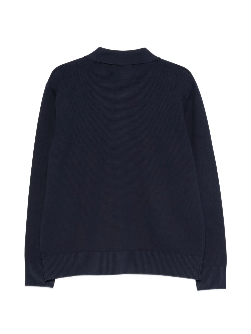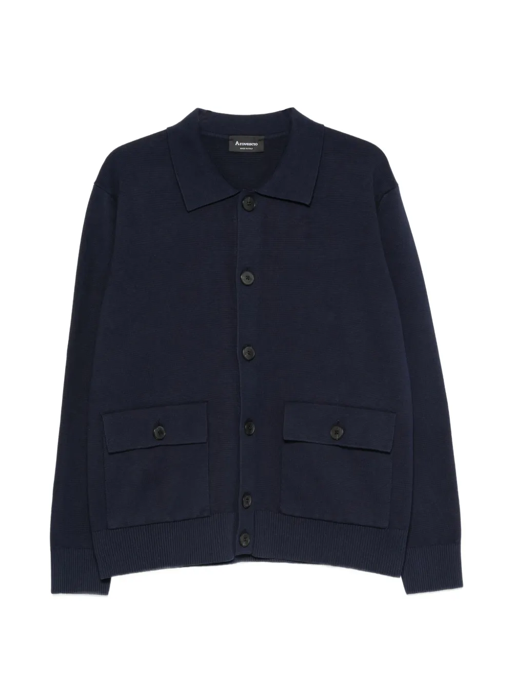 blue button fastening long sleeves front flap pockets ribbed cuffs and hem