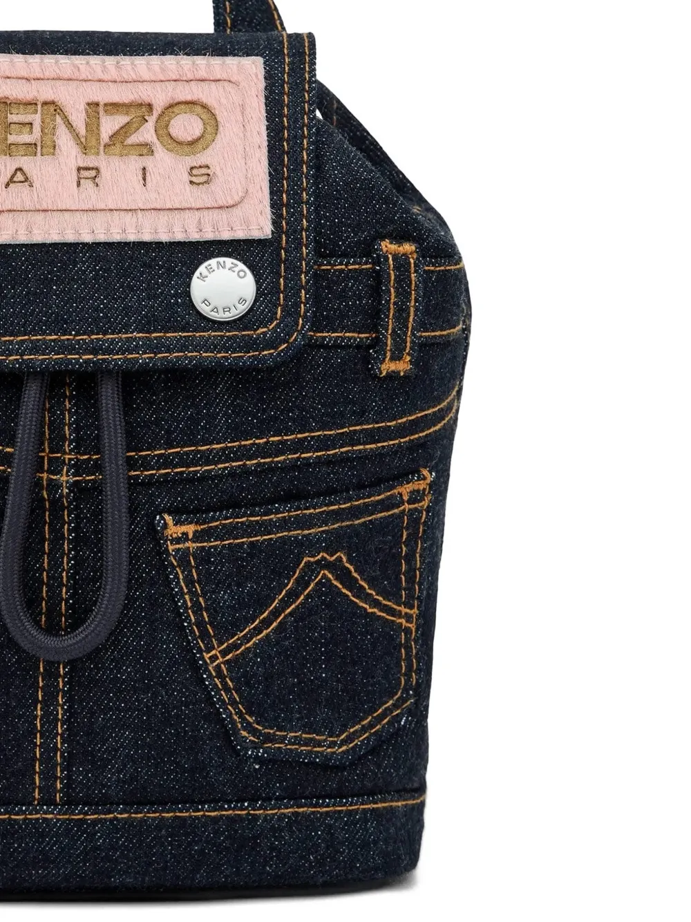 blue drawstring fastening top handle top flap stitched trims embroidered logo