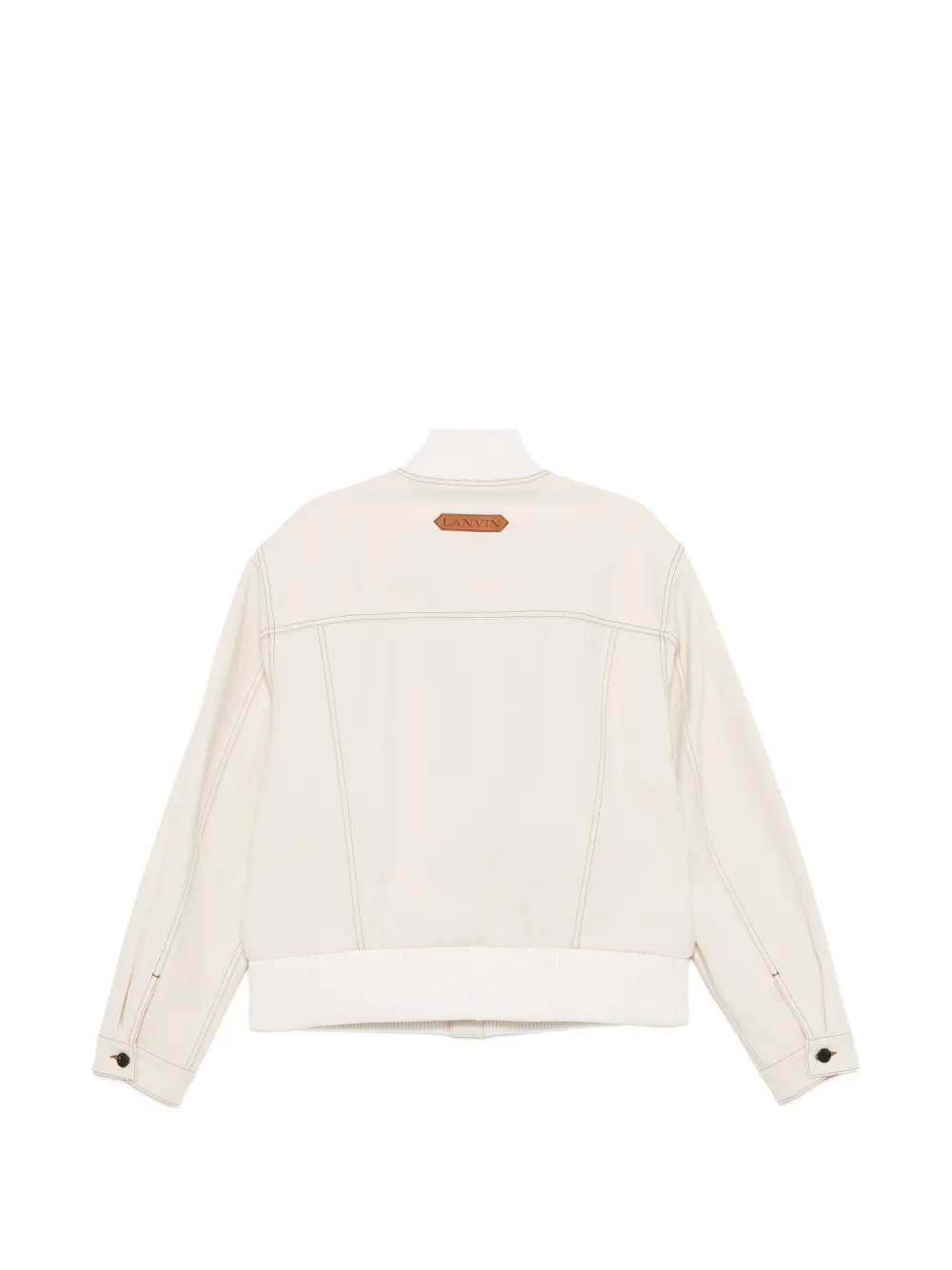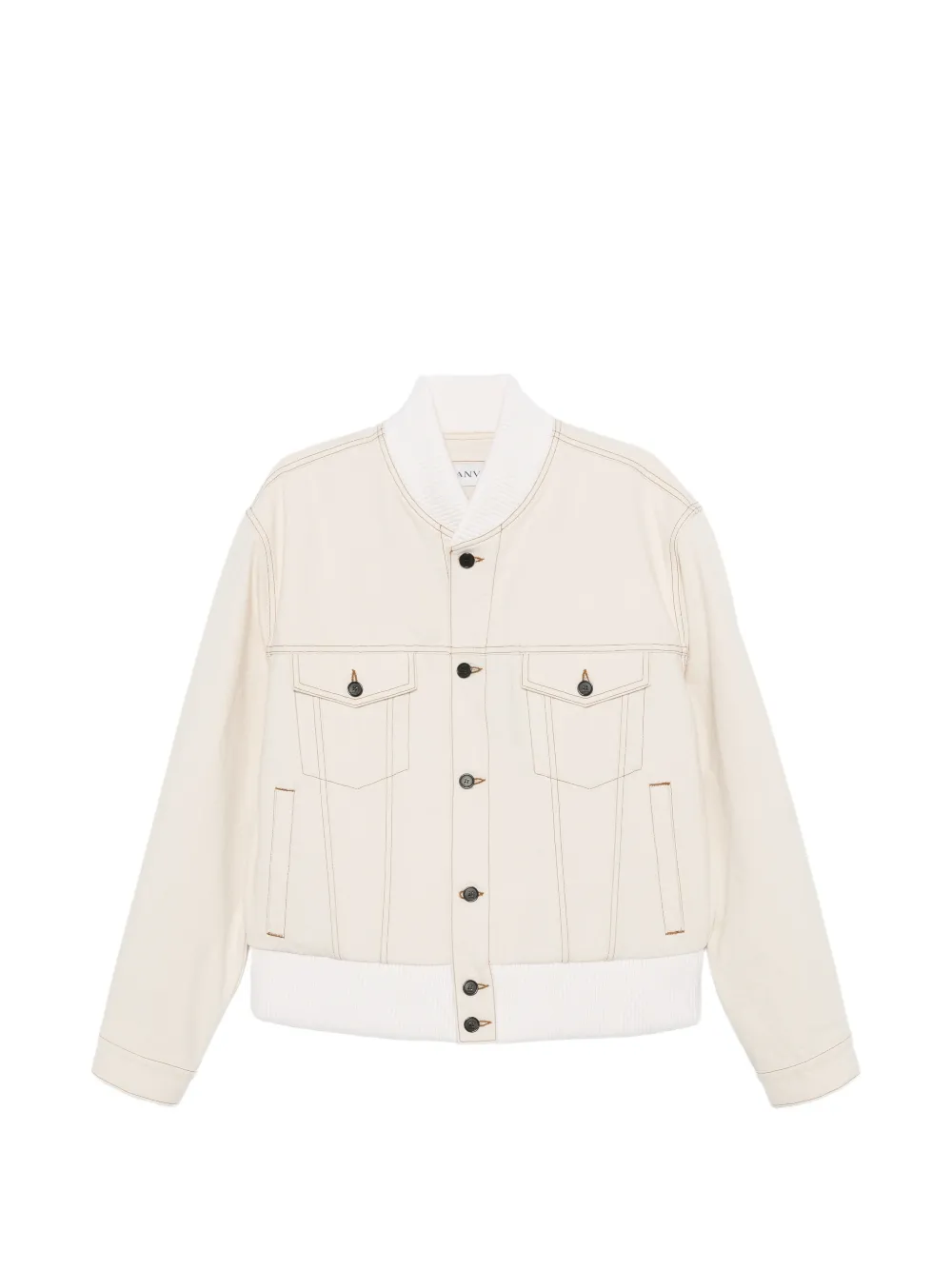 cream button fastening chest pockets ribbed hem contrast stitching