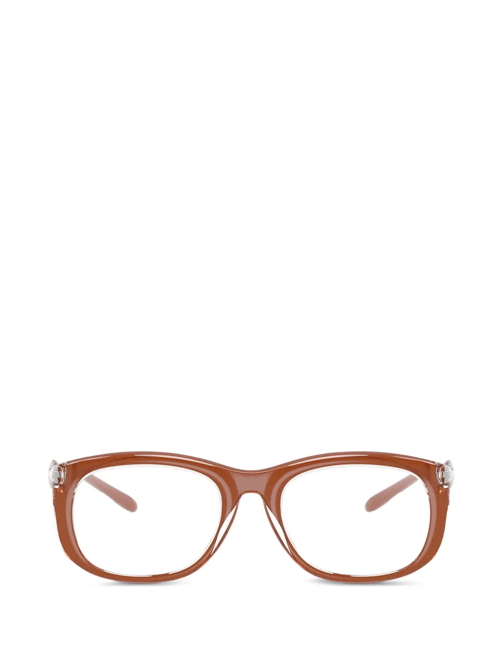 brown oval frame curved tips nose pads All glasses from FARFETCH are sold as non-prescription frames. These glasses come with a protective case.