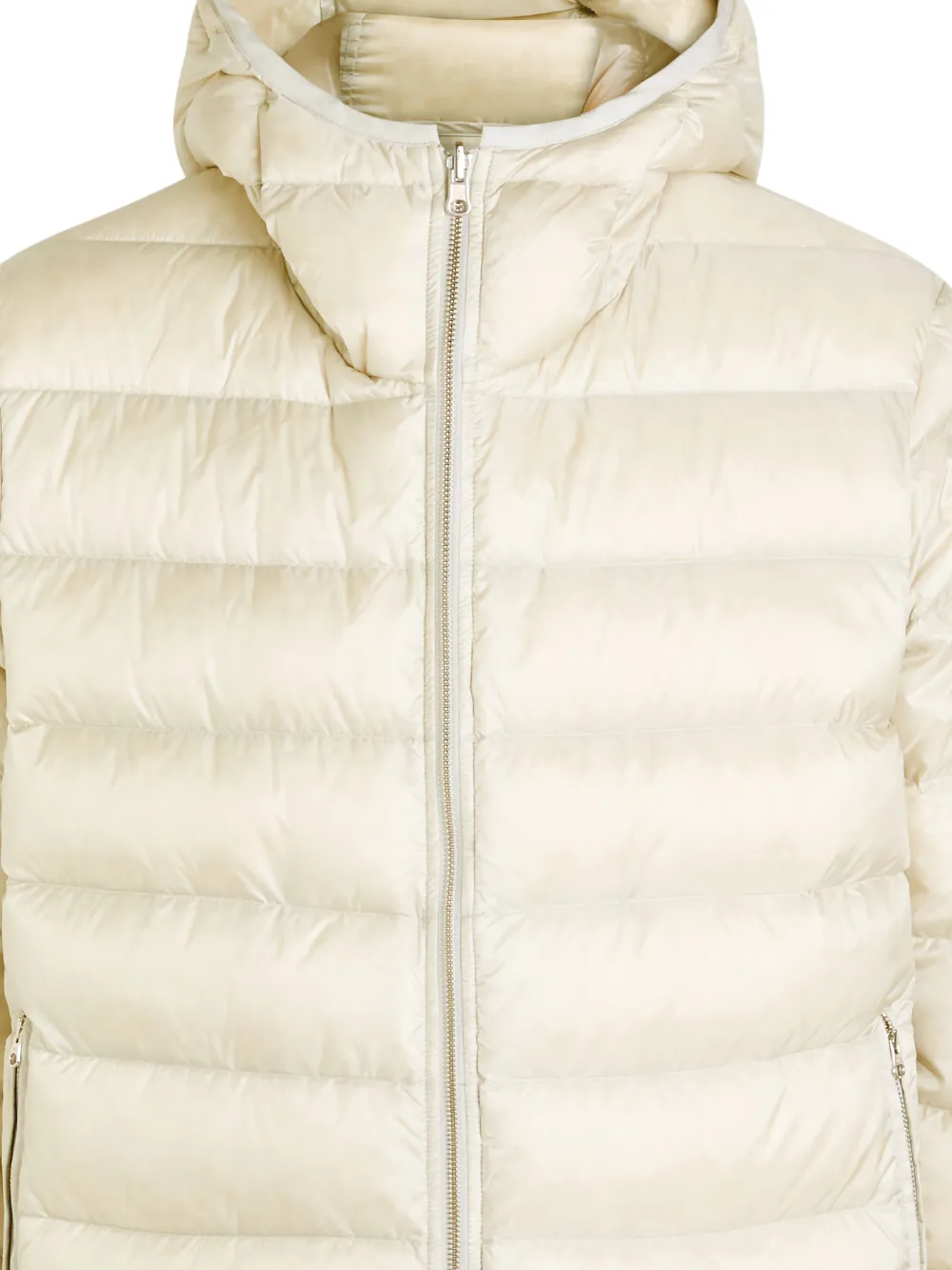 beige padded design hooded zip fastening side zip pockets straight hem