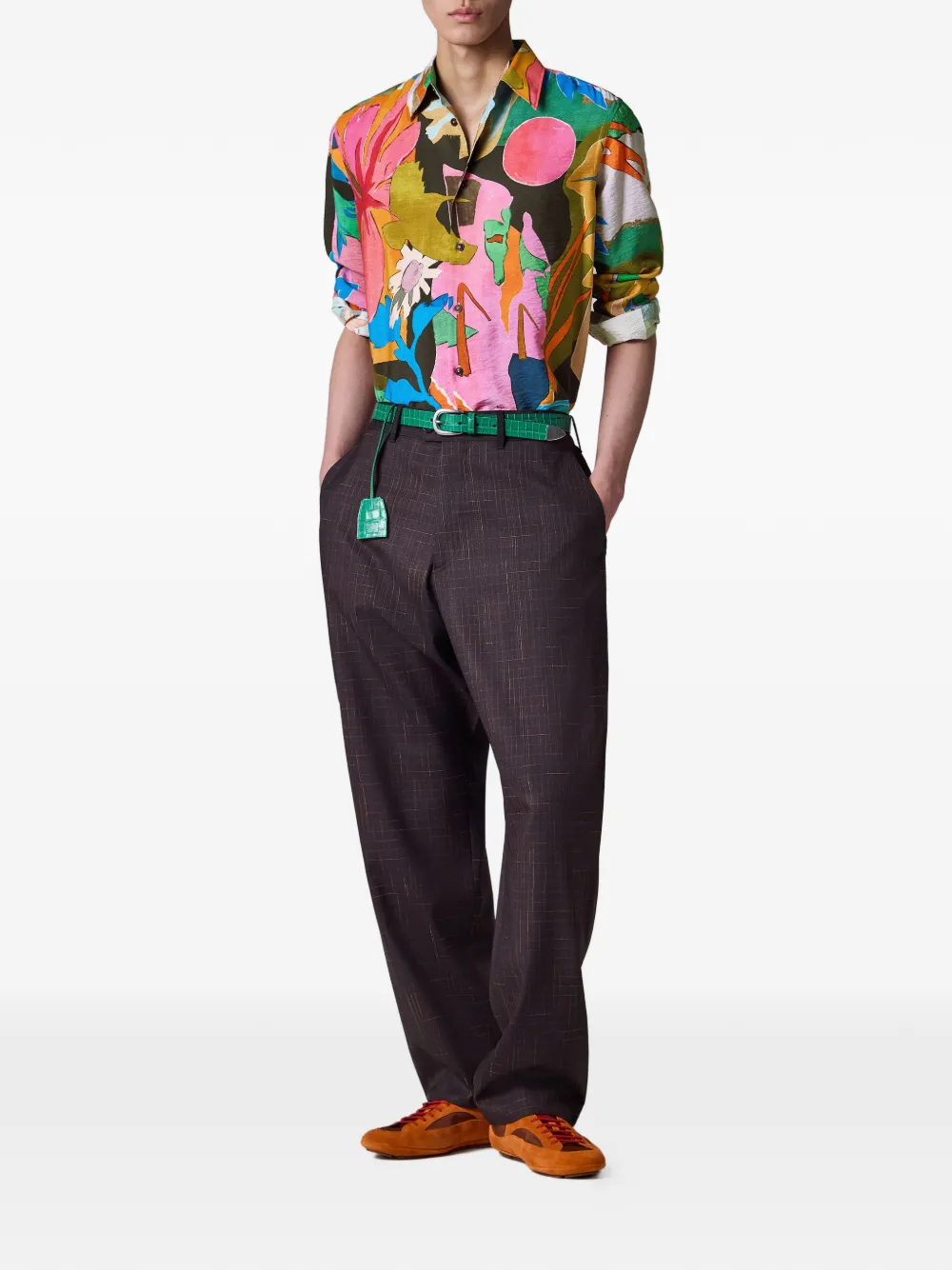 check-pattern trousers