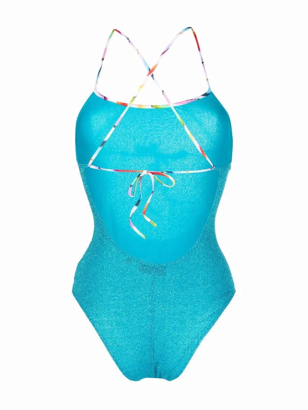 Turquoise blue lurex-detail swimsuit from MISSONI featuring stretch-design, lurex detailing, crossover shoulder straps and sleeveless. Be mindful to try on swimwear over your own garments.. The item you receive may differ slightly from the item photographed. This is due to the artisanal nature in which all Missoni products are constructed..