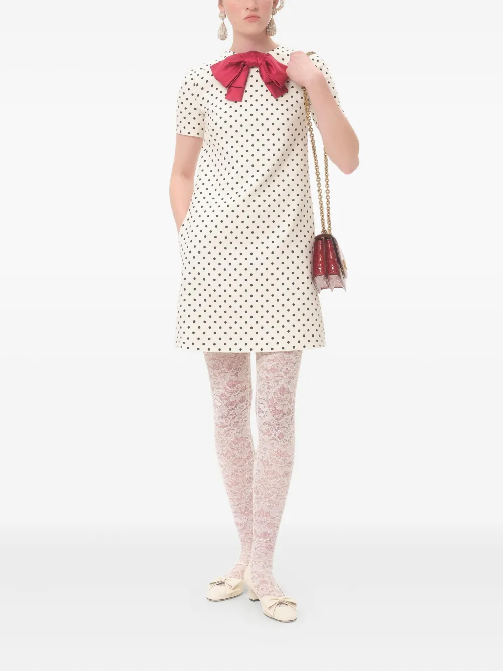The full look includes Valentino Garavani accessories.