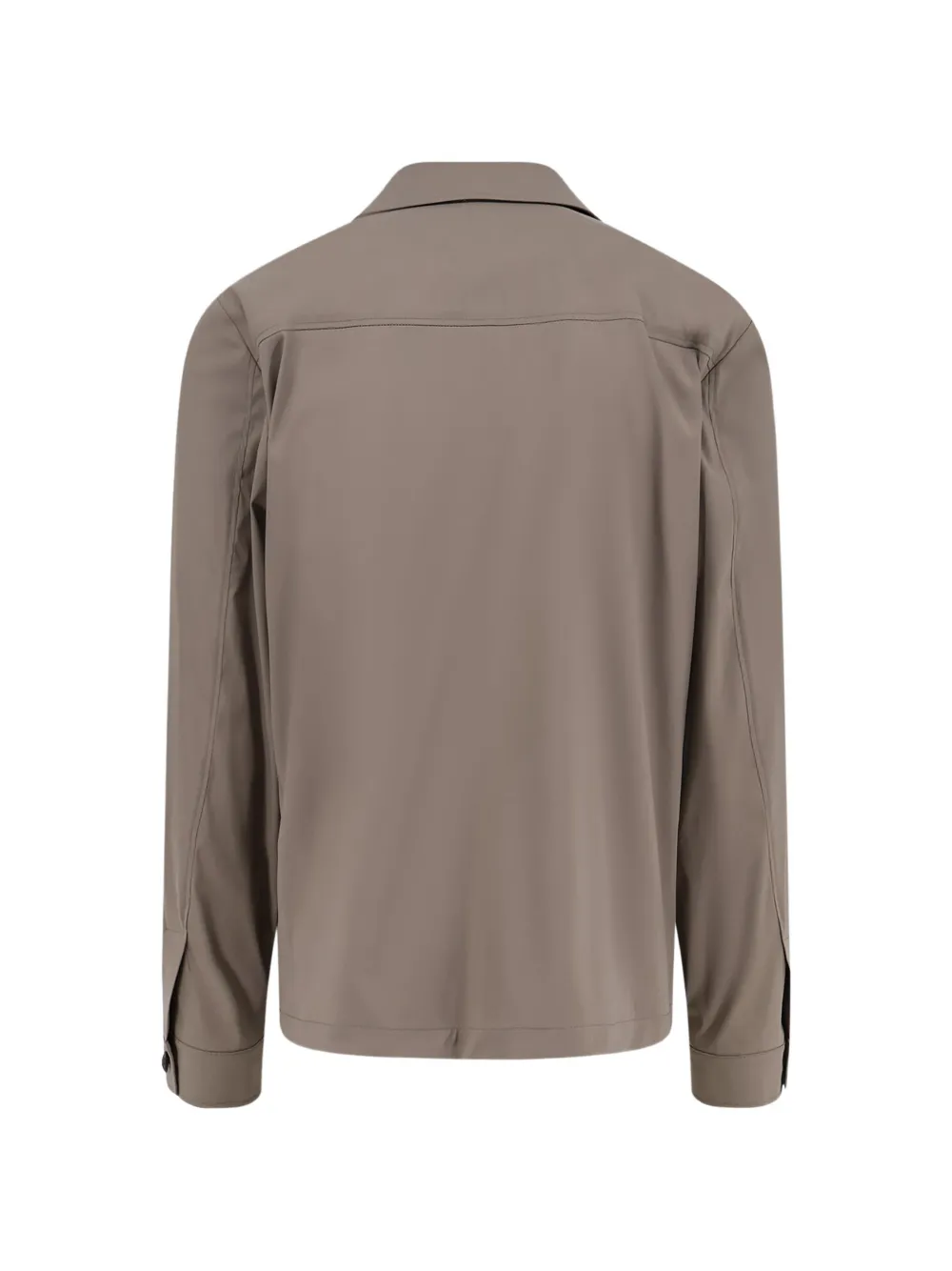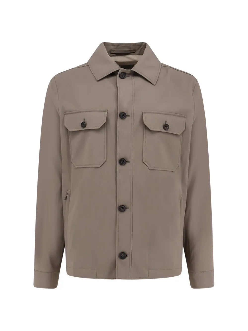 beige button fastening patch pockets point collar long sleeves straight hem