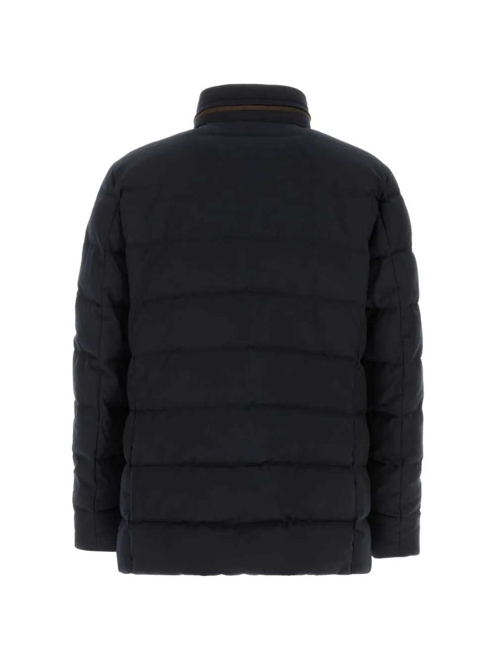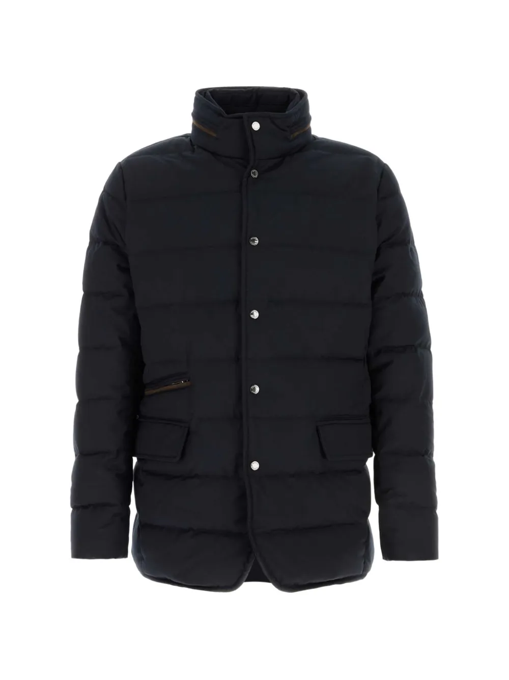 midnight blue button fastening stand collar down padding feather padding chest pocket