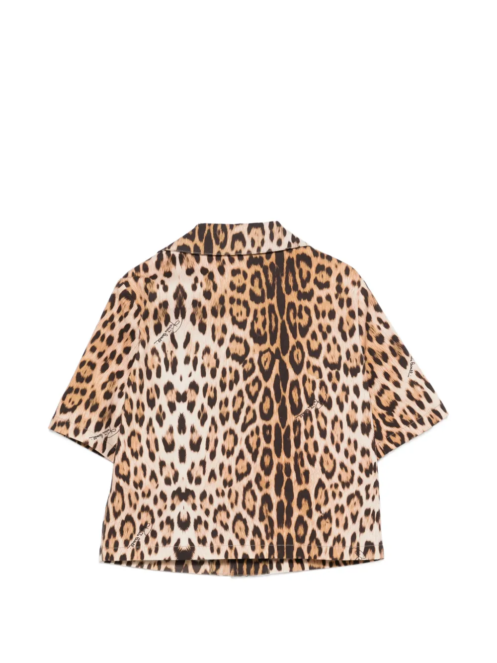 brown leopard pattern logo patch notched lapels button fastening short sleeves straight hem