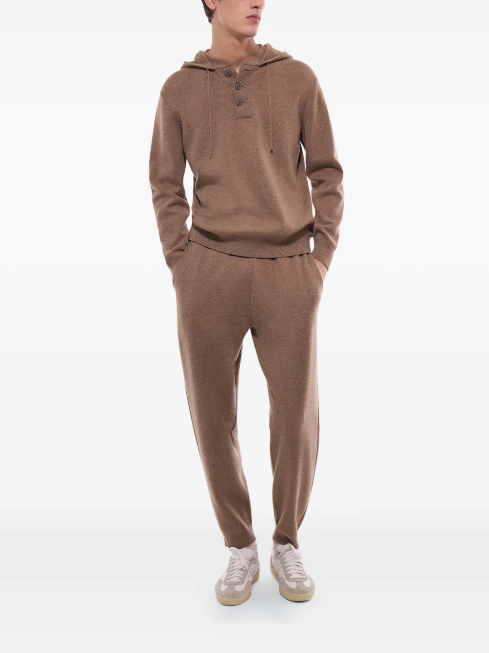 brown drawstring fastening slash pockets ribbed waistband