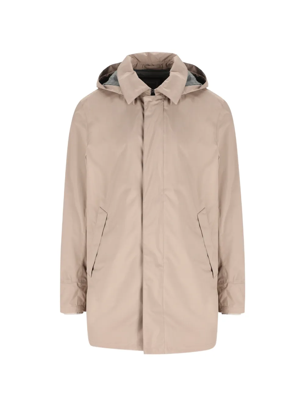 neutral beige hooded zip fastening press-stud fastening long sleeves front pockets