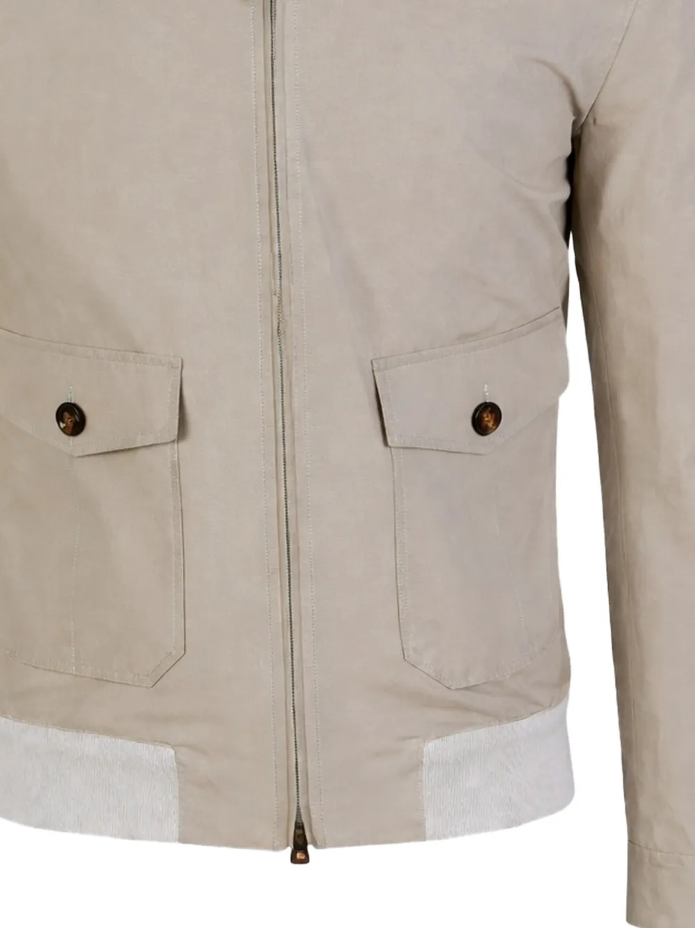 beige flap pockets zip fastening ribbed hem point collar button details